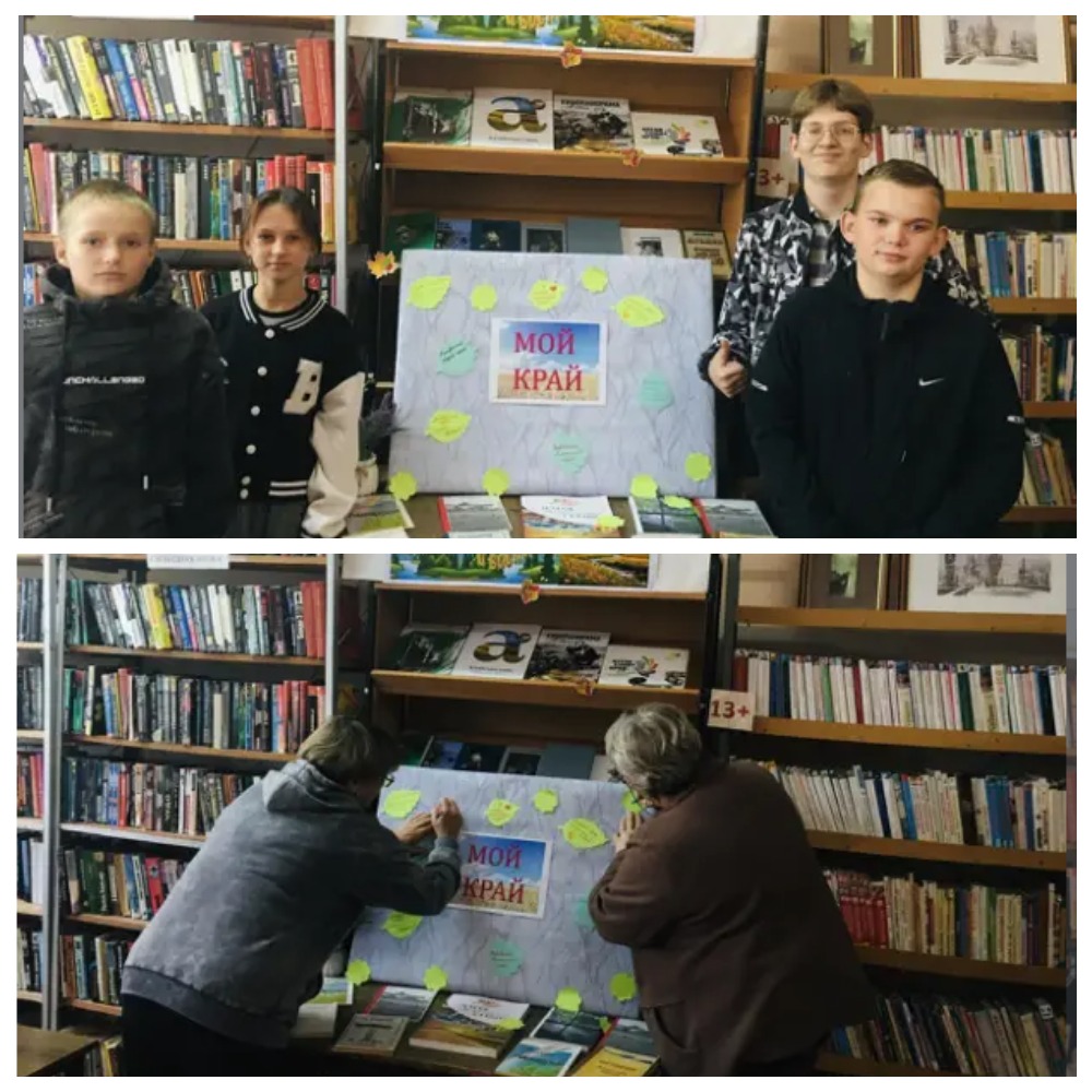 Кроме того, был оформлен стенд «Мой край». Здесь каждый желающий мог оставить свои пожелания, написать короткий рассказ или изобразить рисунок, отражающий видение родной земли.Посетители СДК и библиотеки с интересом знакомились с выставкой, делились впечатлениями и оставляли благодарственные записи.